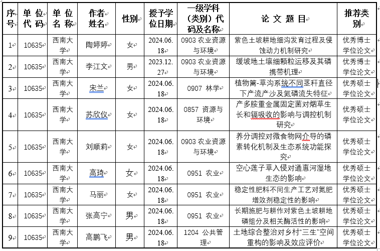 根据《重庆市教育委员会关于开展2024年优秀学位论文评选工作的通知》(渝教研函〔2025〕15号)要求和bibo必博官方网站《关于开展2025年重庆市优秀学位论文推荐工作的通知》精神,经本人申报,公司初审,学术委员会审核,现将拟推荐名单公示如下:
