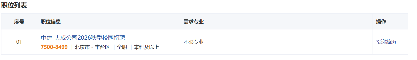 中建-大成建筑有限责任公司2026“领航计划”秋季校园招聘空中宣讲会