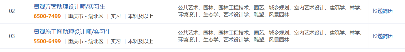 招聘岗位:方案助理设计师专业要求:风景园林等设计专业本硕应届毕业生工作地点:重庆渝北、成都环球中心毕业年级:2026届