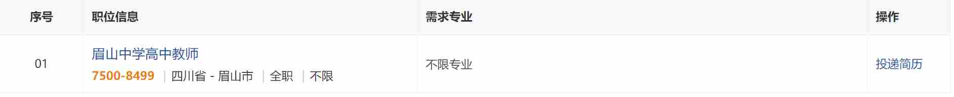 四川省眉山中公司坐落于宋代大文豪苏轼故乡、千载诗书城---眉山,是一所始建于1907年的百年名校、四川省一级示范性普通高中、眉山中学教育集团龙头公司。为深化新时代教师队伍建设改革,加强高素质专业化教师队伍建设,办好人民满意的教育,公司拟公开招聘高中教师22名,现将相关事项公告如下: